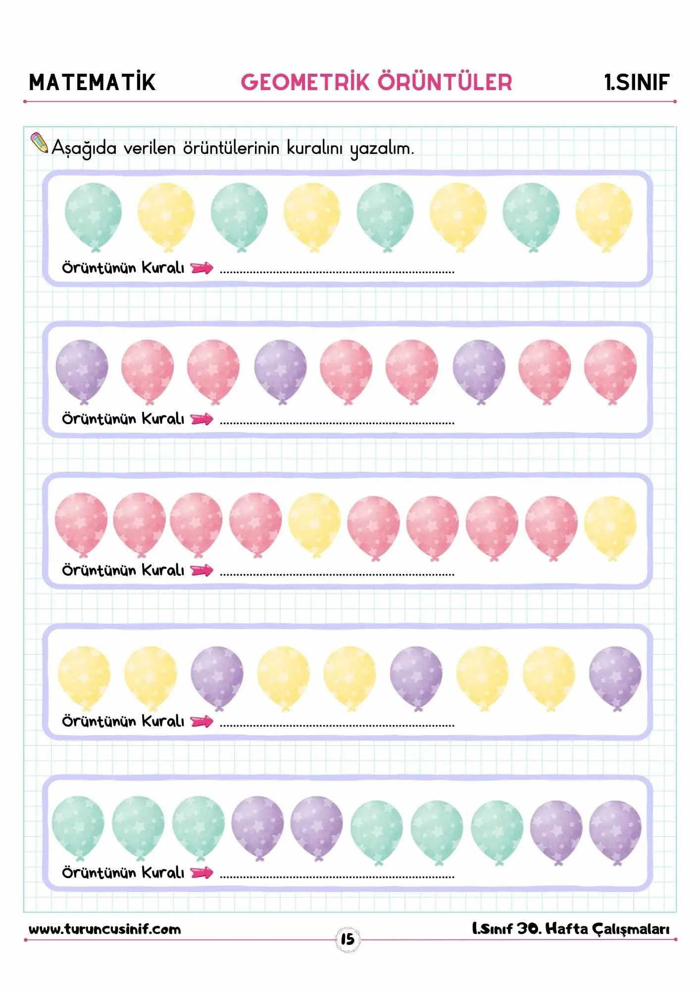 1. sınıf geometrik örüntüler, 1. sınıf geometrik örüntüler çalışma kağıdı ve konu anlatımından oluşan çalışmalarımız pdf olarak hazırlanmıştır. Ayrıca hazırladığımız çalışma sayfalarını sayfanın altında bulunan indir butonuna tıklayarak kolayca indirebilirsiniz.