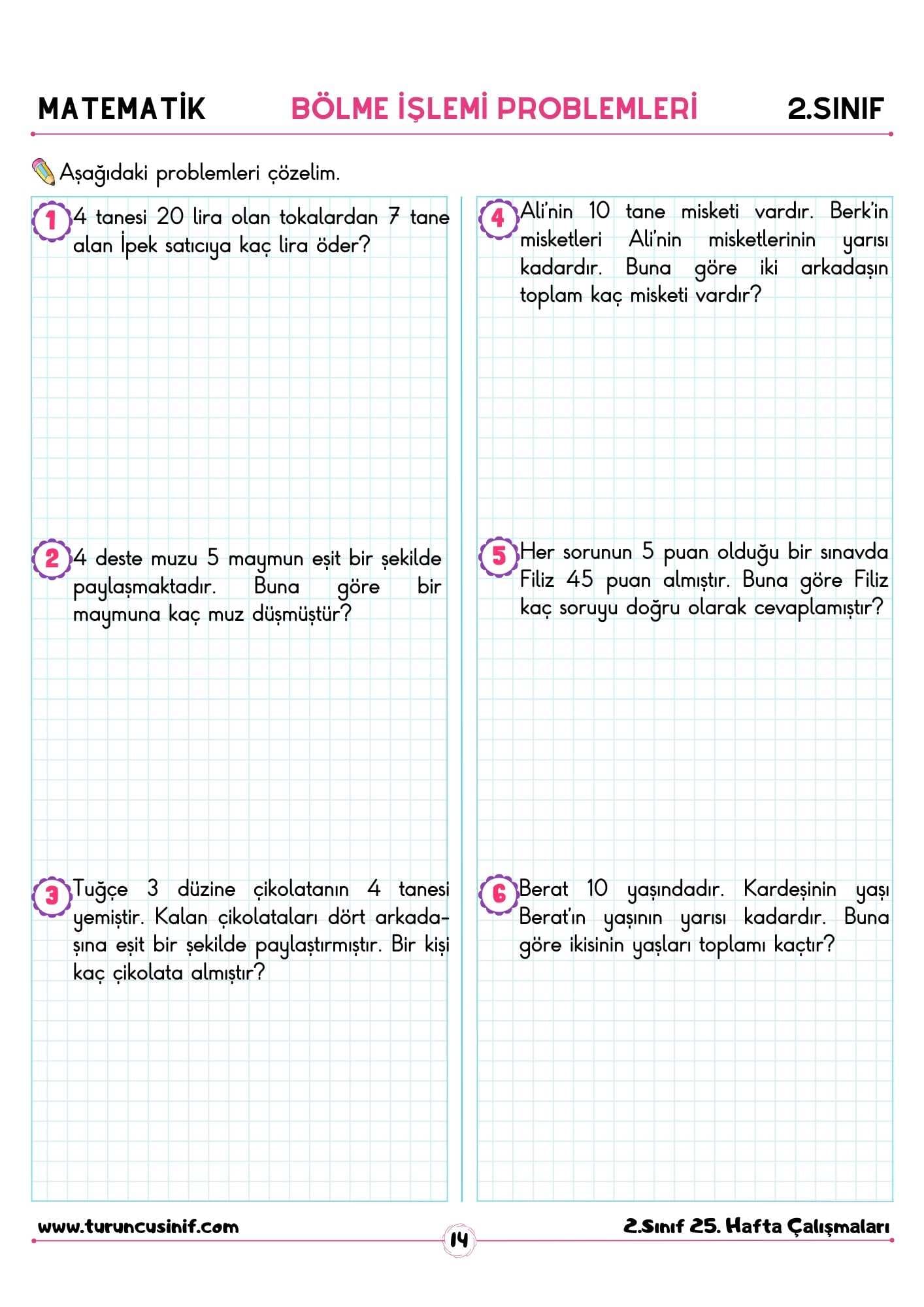 2. sınıf bölme işlemi problemleri, 2. sınıf bölme problemleri pdf olarak hazırlanmıştır. Ayrıca sayfanın altında bulunan indir butonuna tıklayarak kolayca indirebilirsiniz.