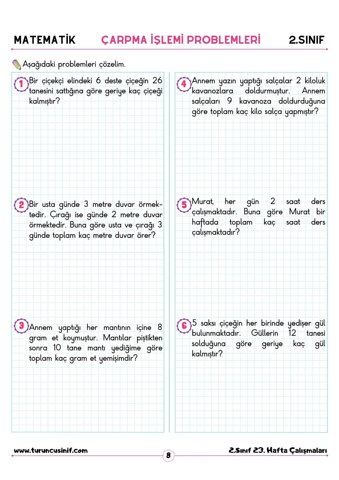 2. Sınıf Çarpma Problemleri