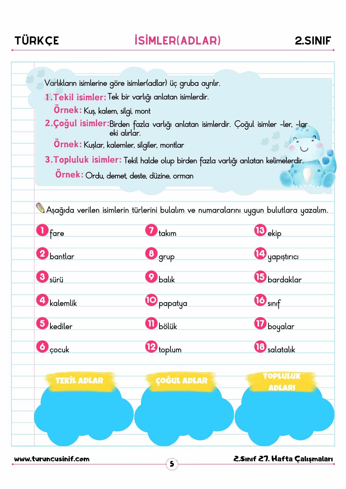 2. Sınıf Tekil, Çoğul ve Topluluk İsimleri Konu Anlatımı