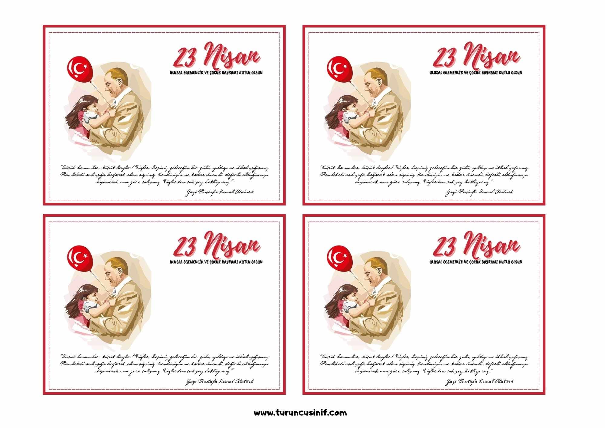 Daha sonra 23 nisan davetiye örneklerine de yer verdik. Ayrıca 23 nisan hediye kartları da çalışmalarımızın içinde yer almaktadır. Ayrıca 23 nisan rozetlerini de hazırladık.