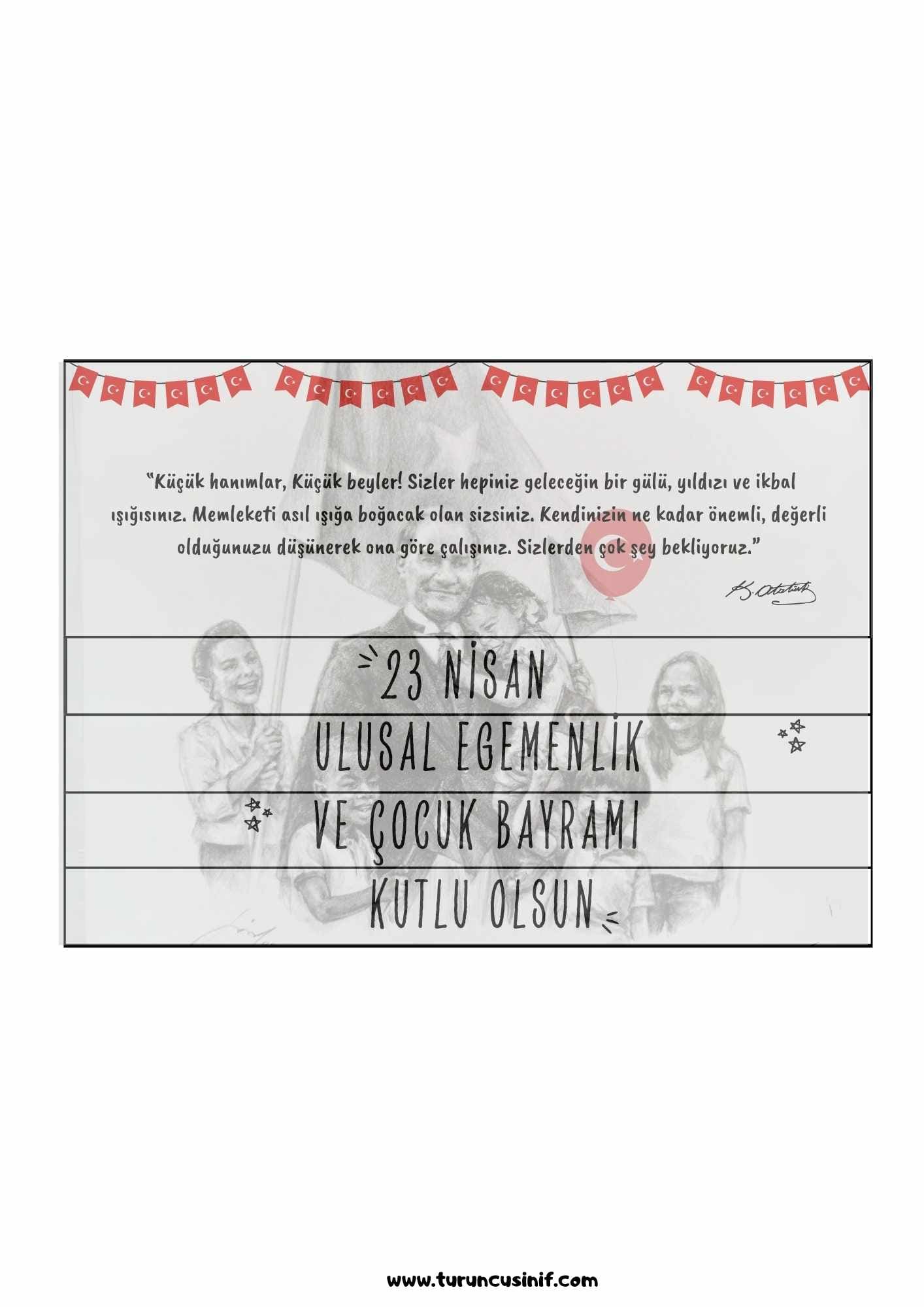 23 nisan pano, 23 nisan boyama, 23 nisan etkinlikleri, 23 nisan cam süsü pdf olarak hazırlanmıştır. Ayrıca sayfanın altında bulunan indir butonuna tıklayarak çalışmalarımızı kolayca indirebilirsiniz. Son olarak tüm çalışmaların ayrı ayrı indirme butonları bulunmaktadır.