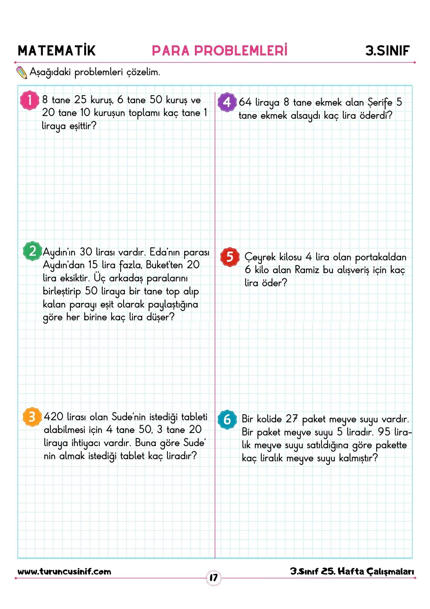3. sınıf para problemleri test pdf sayfamız güncel müfredata göre özenle oluşturulmuştur. Ayrıca etkinliklerimiz kazanımlar ölçüsünde titizlikle hazırlanmıştır. Bundan dolayı etkinlik sayfamızı konu pekiştirme, değerlendirme ve konu anlatımı çalışmalarınızda gönül rahatlığıyla kullanabilirsiniz.