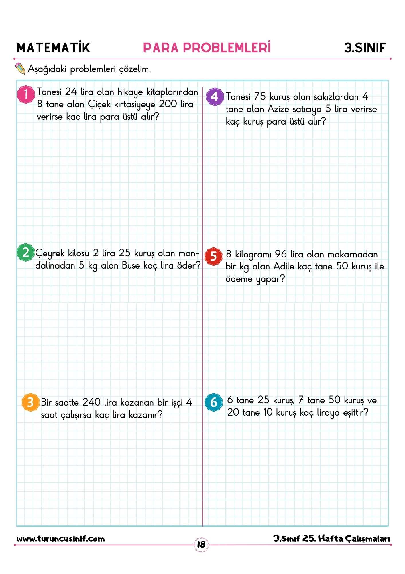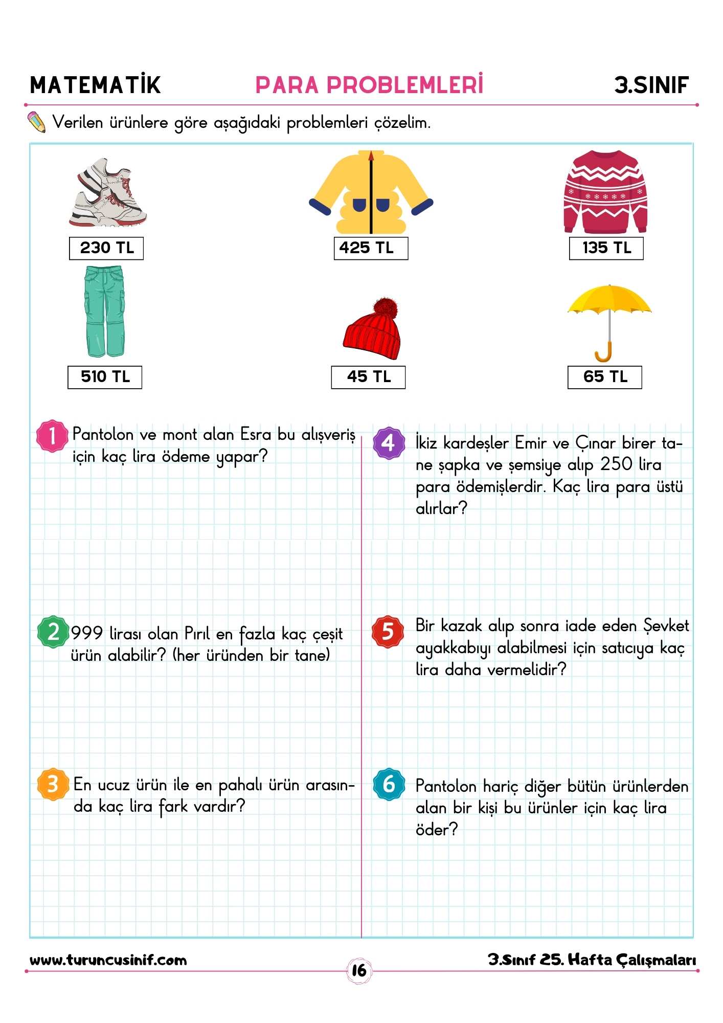 3. sınıf matematik dersi para problemleri test PDF çalışma sayfası ile ilgili hazırladığımız etkinlikleri indirmek için aşağıdaki butona tıklayınız.