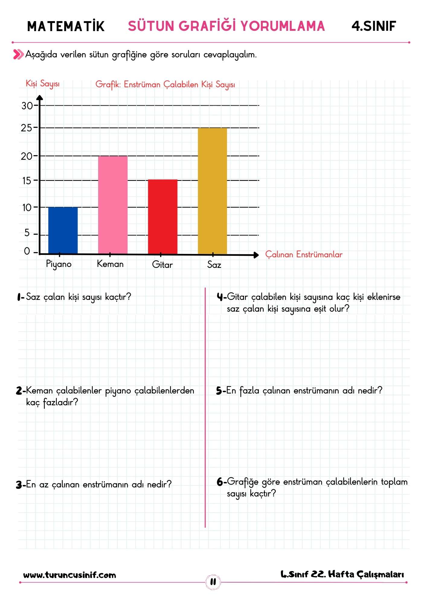 4. sınıf tablo ve grafik yorumlama konu anlatımı etkinlikleri ile siz değerli okurlarımızlayız. Bu hafta 4. sınıf matematik dersinde sizlerle birlikte tablo ve grafik yorumlama çalışma sayfası içeriğimizi inceleyeceğiz. Çalışma sayfamız güncel müfredata göre ve PDF formatında hazırlanmıştır. İNDİR butonuna basarak çalışmalarımıza ücretsiz ve hızlı şekilde erişebilirsiniz. Keyifli çalışmalar dileriz.